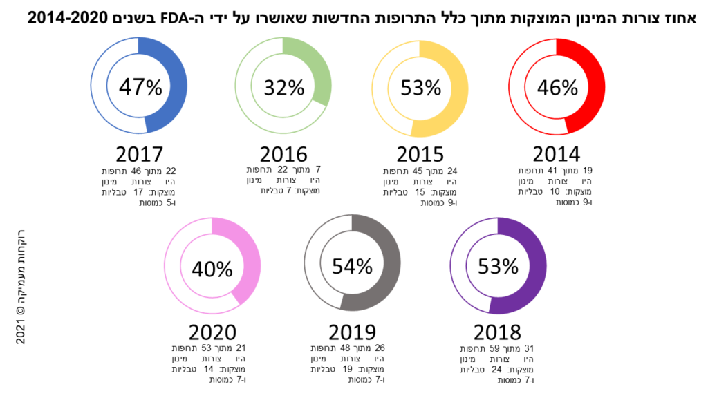 הנתונים לקוחים מדו”חות ה-Center for Drug Evaluation and Research) CDER) של ה-FDA