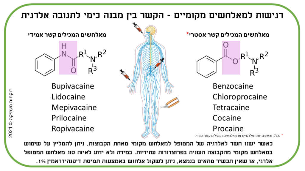 One thought on “רגישות למאלחשים מקומיים – הקשר בין מבנה כימי לתגובה אלרגית”